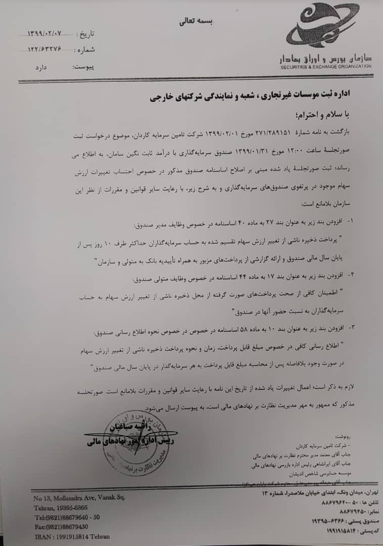 موافقت سازمان بورس و اوراق بهادار با صورتجلسه مجمع مورخ 1399/01/31